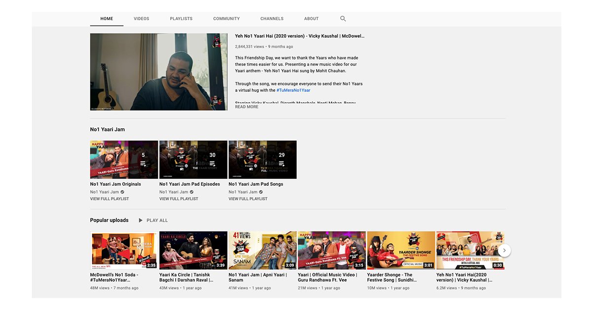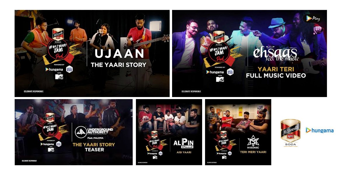 Diageo's McDowell's No.1 Soda partnered with Hungama to create original music with musicians and independent artists. Hungama created original music with renowned artists for the festive season through No.1 Yaari Jam Originals. The association enabled budding musicians through No.1 Yaari Jam Pads to create their own music. The ask from us was to step in as a digital media specialist and conceptualise, execute and optimise video promotion campaigns for Diageo on behalf of Hungama.